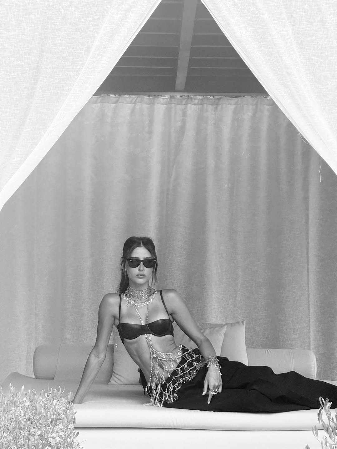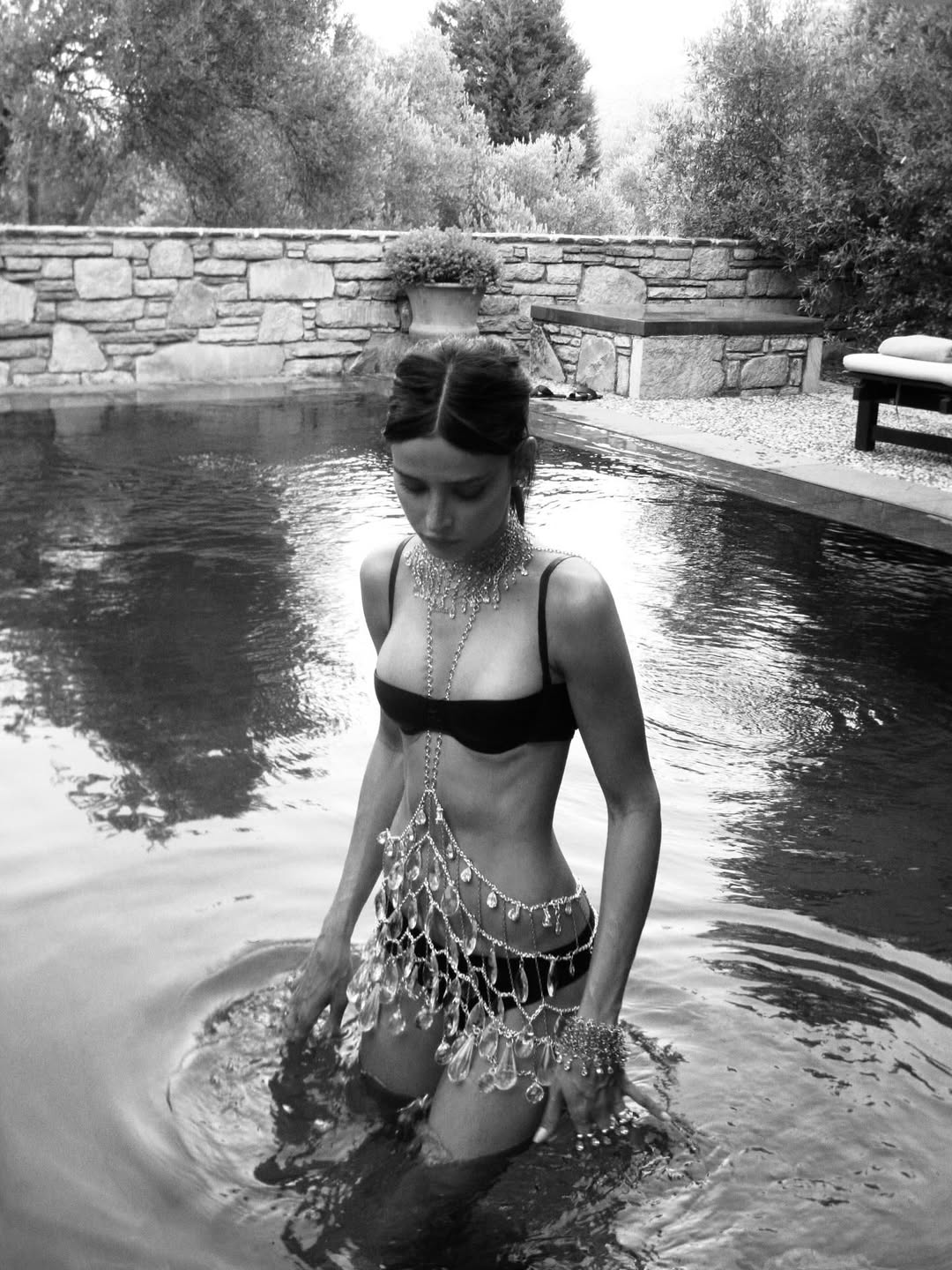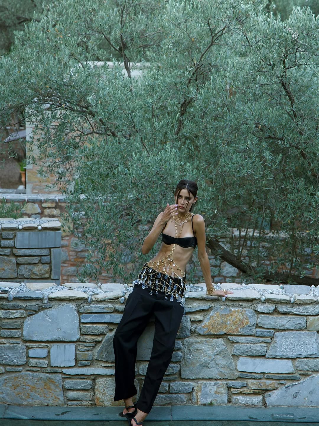 Our Body Bijoux is a statement, layerable and can be worn a plethora of ways — handcrafted with golden links and cascading teardrops crystals. This piece sculpts the body dramatically ease